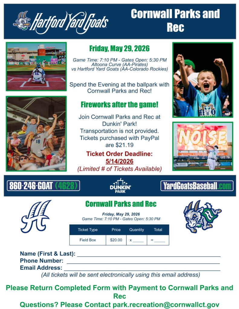 Join Cornwall Park and Rec at Dunkin’ Park!